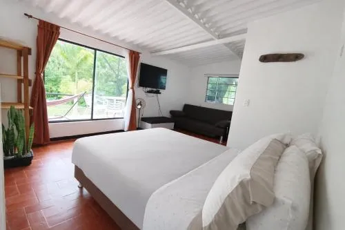 Más información sobre La Granja De Bam BamKetana Eco Hotel ofrece habitaciones familiares ideales para grupos o familias que buscan comodidad en un entorno rural, junto con dos piscinas disponibles para refrescarse durante la estancia. El alojamiento incluye estacionamiento gratuito y está ubicado en Villeta-Sasaima Vereda Mesetas, una zona tranquila dentro de la finca Siberia.