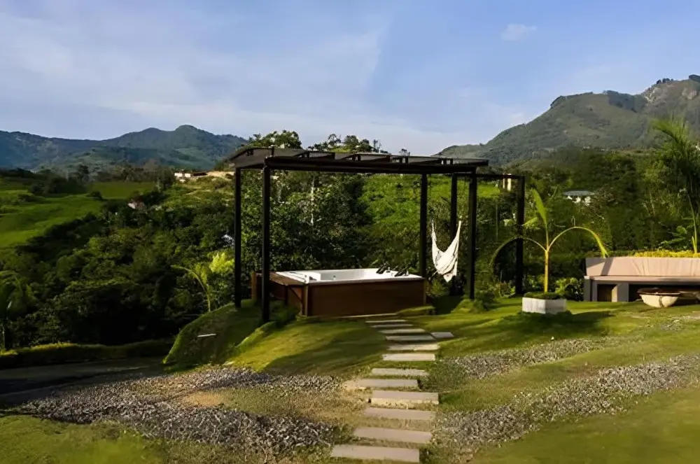 GLAMPING EL PARAÍSO ofrece un espacio campestre con comodidades como restaurante propio para disfrutar de comida local y especialidades regionales, piscina al aire libre ideal para relajarse bajo el sol colombiano, servicio de desayuno incluido cada mañana y estacionamiento gratuito disponible en las instalaciones.