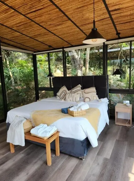 Más información sobre Cabaña EcologicaEco Hotel La Primavera ofrece cabañas campestres diseñadas para descanso familiar en un entorno natural, ideales para quienes buscan desconectar sin renunciar al confort básico como estacionamiento incluido.
